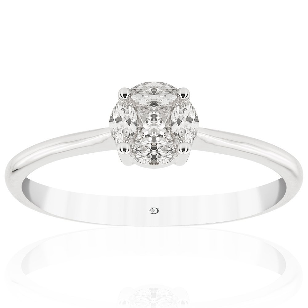 0,28 karat ağırlığındaki bu göz alıcı yüzük, dört adet markiz kesim pırlantanın kusursuz birleşimiyle tek taş illüzyonu yaratıyor. Işığı her açıdan yansıtan bu simetrik tasarım, zarif beyaz altın montürle bütünleşerek sade ama etkileyici bir duruş sergiliyor. İnce yapısıyla parmakta zarif bir iz bırakırken, parıltısıyla göz kamaştırıyor. Günlük şıklığa zarif bir ışıltı katmak isteyenlerin favorisi olmaya aday, minimalizmin parlayan yüzü.