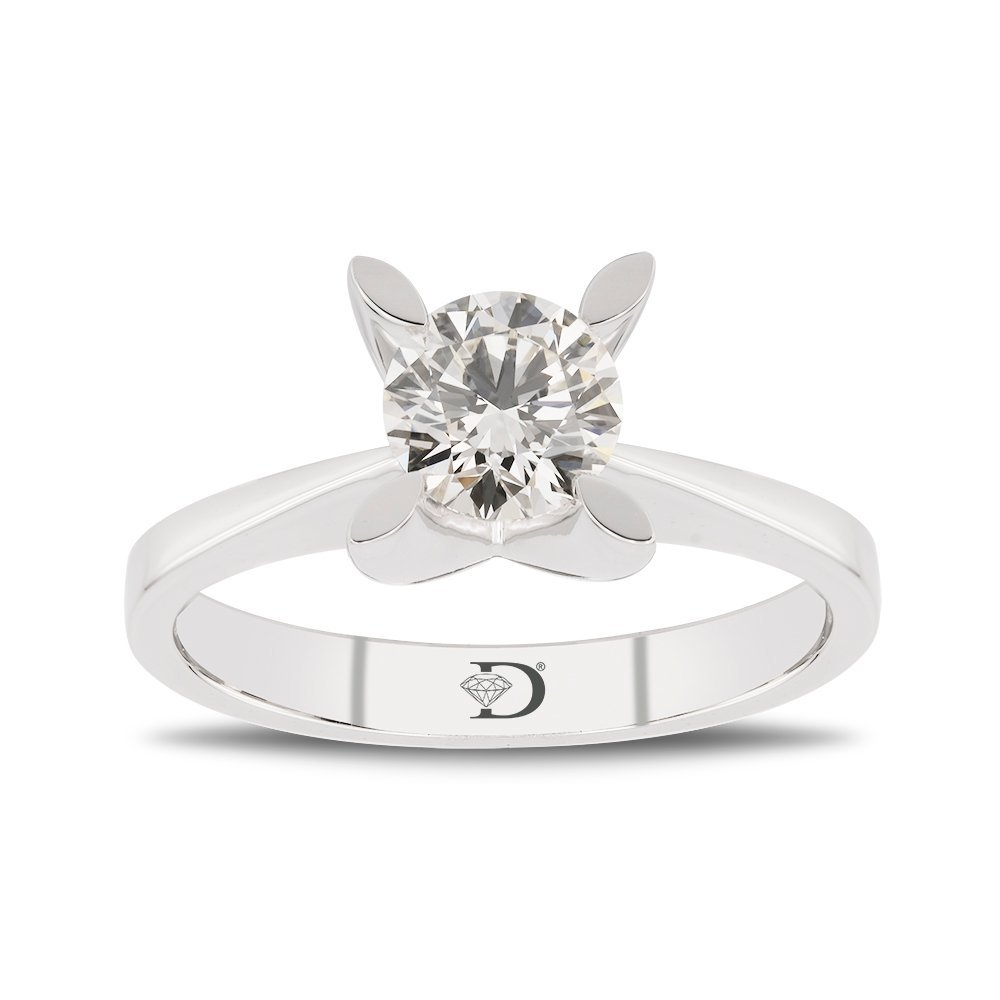 0,30 karat ağırlığındaki yuvarlak kesim pırlantasıyla öne çıkan bu yüzük, dört yapraklı özel formda tırnaklarla taşını adeta havada tutuyor. Klasik zarafet ile modern çizgilerin buluştuğu bu tasarım, tek bir ışıltıyla tüm bakışları üzerine çekmeye hazır.