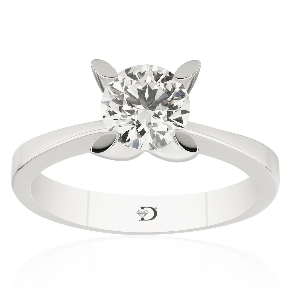 0,90 karat ağırlığındaki bu yüzükte, etkileyici bir brilliant cut yuvarlak pırlanta, dört yapraklı çiçekten ilham alan modern tırnak detaylarıyla göz alıcı bir şekilde taçlandırılmış. Beyaz altının sade ve net çizgileriyle birleşen bu özgün montür, pırlantanın zarafetini ön plana çıkarıyor. Her açıdan güçlü bir duruş sergileyen tasarım, klasik güzelliğe modern bir yorum katıyor.