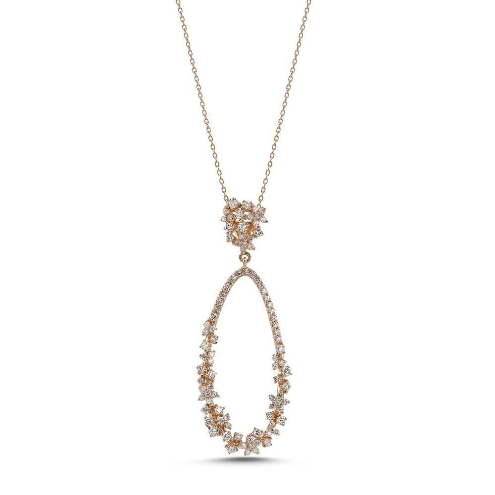 0,97 karat pırlanta ve yakut taşlarla tasarlanan bu kolye, özgürlüğün ve zarafetin simgesi olan kelebek figürüyle hayat buluyor. Markiz kesim yakutların derin kırmızısı, yuvarlak pırlantalarla tamamlanarak tasarıma dinamik bir hareket katıyor. Beyaz altın kıvrımlı detaylar, iki kelebeğin uçuşan siluetini incelikle yansıtıyor. Parıltılı dokunuşlarla süslenen zarif zinciri, tasarımın etkileyiciliğini ön plana çıkarıyor. Göz alıcı bir estetiğe sahip bu kolye, taşıyana eşsiz bir ışıltı ve zarafet sunuyor.
