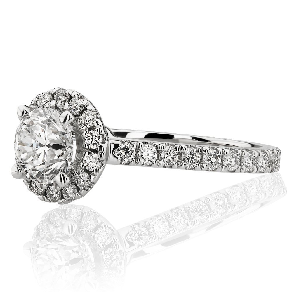 1,68 karat pırlantayla bezenmiş bu yüzük, klasik bir zarafeti modern ışıltıyla buluşturuyor. Merkezdeki iri yuvarlak kesim taş, çevresini saran minik pırlantaların oluşturduğu ışık halkasıyla göz kamaştırıyor. Yüzük bandındaki taşlar ise tasarımın ihtişamını parmak boyunca sürdürüyor. Işıltının sadelikle kusursuz bir denge yakaladığı bu model, zarif detaylarıyla dikkat çekiyor ve aşkın en parıltılı halini simgeliyor.