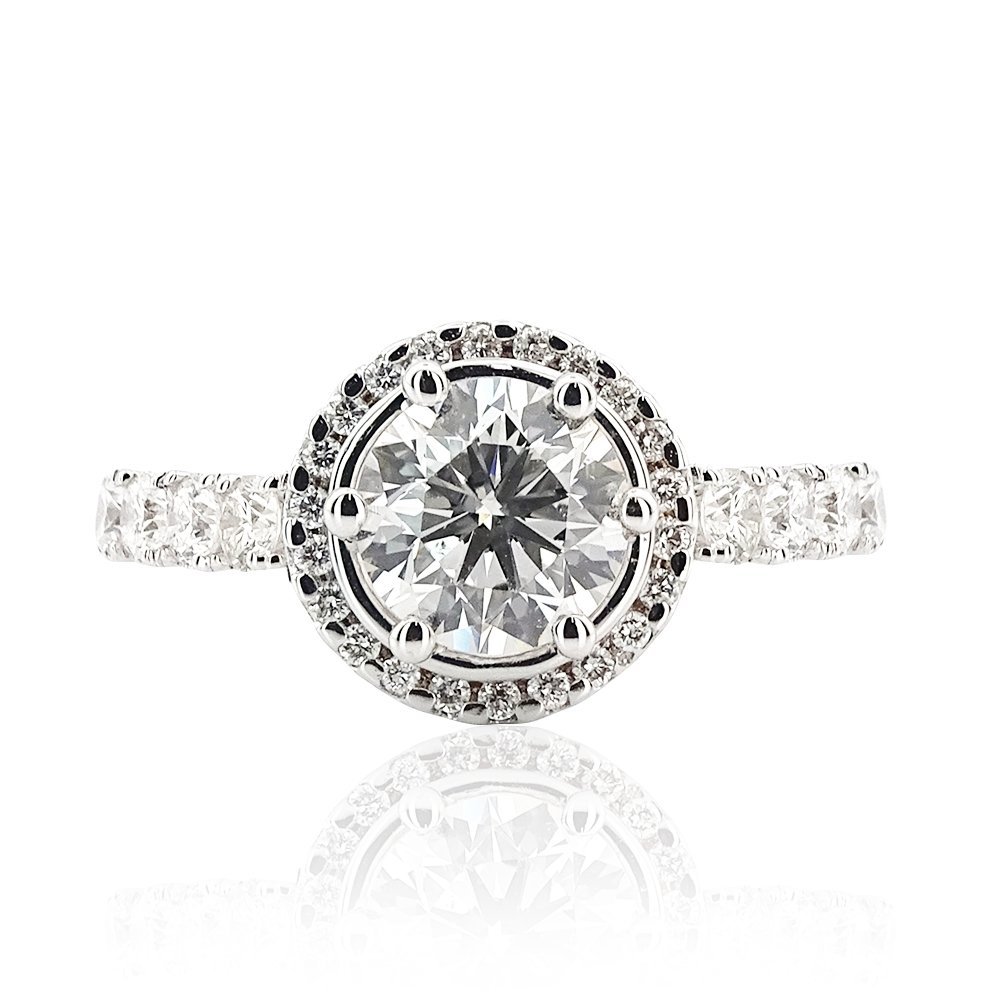 1,01 karat ağırlığındaki bu zarif yüzük, merkezde yer alan ışıltılı yuvarlak kesim pırlantasıyla göz kamaştırıyor. Etrafını çevreleyen pavé işçilikli pırlantalar, merkez taşı adeta taçlandırıyor. Yüzüğün yanlarında devam eden taşlar ise tasarıma dengeli bir ışıltı katarken, formun zarafetini ön plana çıkarıyor. İncelikle işlenmiş bu yüzük, klasik bir tasarımın modern zarafetle yorumlanmış hali. Sonsuz aşkın en parıltılı ifadesi olmayı hak ediyor.