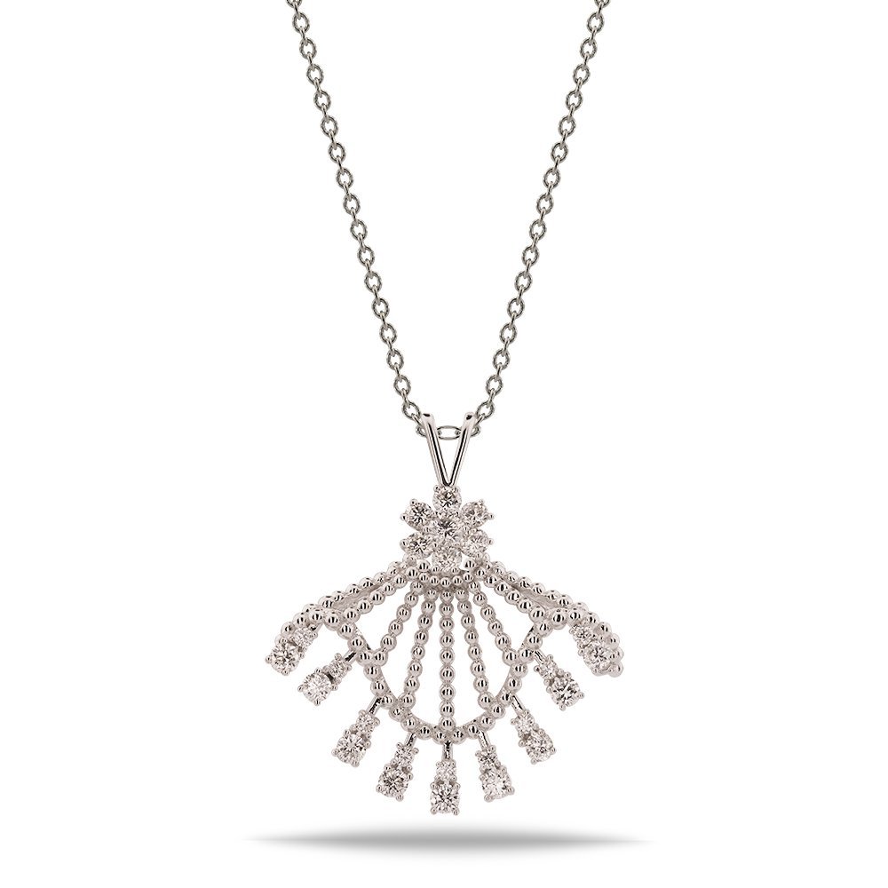 Hareketli tasarımıyla göz kamaştıran bu 1,15 karat pırlantalı kolye, sanatsal dokunuşlarla yeniden yorumlanan klasik şıklığı temsil ediyor. Markiz ve yuvarlak kesim pırlantaların kusursuz yerleşimi, tasarıma hem dinamizm hem de sofistike bir denge kazandırıyor. Ortadaki dairesel form, sonsuzluğu simgelerken, üst kısımdaki zarif yaprak detayları doğanın inceliğini yansıtıyor. Sallantılı pırlanta süslemeler ise ışıkla buluştuğunda büyüleyici bir parıltı sunuyor. Günlük stilinize ince bir ışıltı katmak ya da özel anlarınızı unutulmaz kılmak için tasarlanan bu kolye, zamansız zarafetin modern bir yorumu.