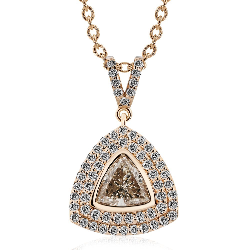 Bu zarif kolye, 1,26 karat büyüklüğünde üçgen kesim pırlanta taşıyla tasarlandı. Çevresinde yer alan beyaz pırlantalar ise taşın ışıltısını vurgularken, zincirinde bulunan küçük taşlar da bu şıklığı tamamlıyor. Kırmızı altın ayar, parçaya sıcak ve zarif bir dokunuş eklerken, beyaz pırlanta taşlar ise mükemmel bir kontrast yaratıyor. Bu zarif parça, hem günlük kullanıma hem de özel anlarınıza eşlik edecek.