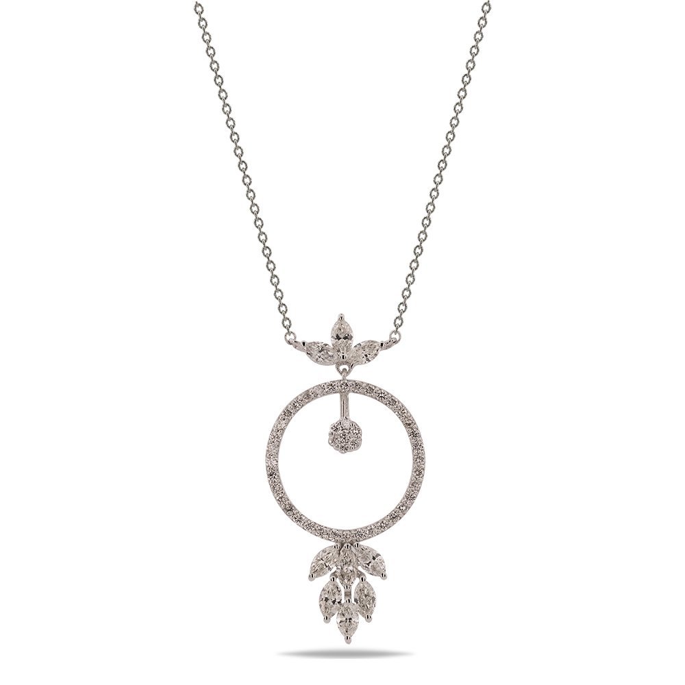 1,30 karat damla kesim ve yuvarlak pırlantalı beyaz altın kolye, zarafeti detaylarda saklayan özel bir tasarım. Damla kesim pırlantaların ışık yansımalarıyla ön plana çıktığı bu kolye, zarif kıvrımlarıyla estetik bir bütünlük sunuyor. Beyaz altının ışıltılı dokusu, pırlantaların göz alıcı parıltısıyla birleşerek hem özel günlerde hem de günlük şıklıkta etkileyici bir tamamlayıcı oluyor. Zamana meydan okuyan bu tasarım, her anınıza ışıltı katıyor.