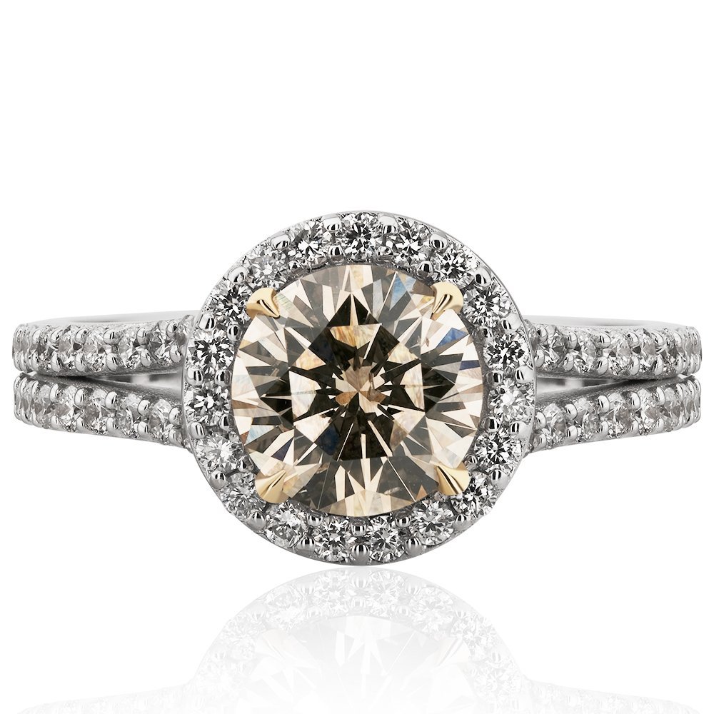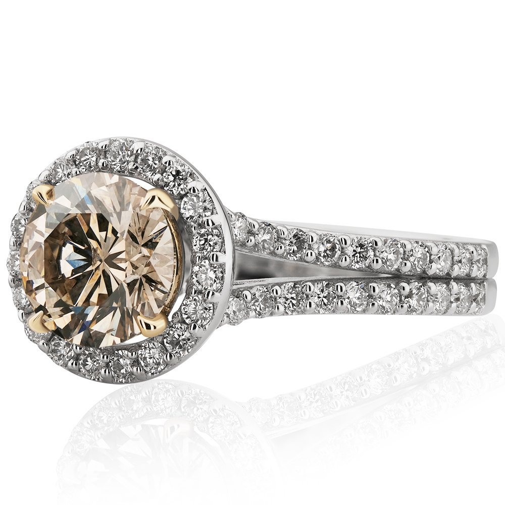 1,37 karat pırlantaya sahip bu yüzük, merkezdeki fancy light brown taşla baş döndürüyor. Işıltısı etrafını saran beyaz pırlanta halkasıyla daha da vurgulanırken, çift sıralı taşlı bant zarif bir ihtişam katıyor. Altın rengi tırnaklar ise detaylara verilen önemi gözler önüne seriyor. Cesur ama zarif bir ifade arayanlar için etkileyici bir imza parça.