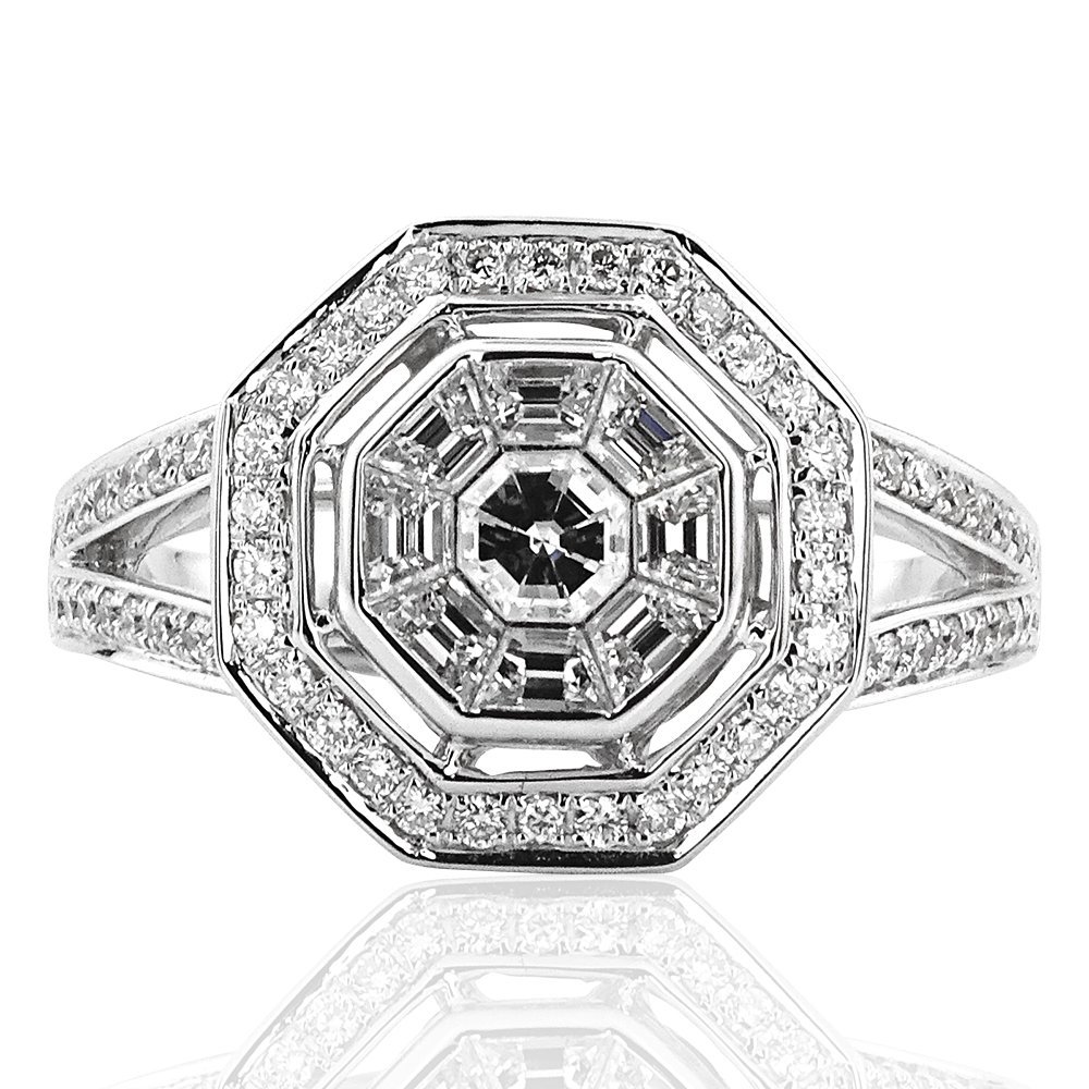 1,43 karat pırlantayla tasarlanan bu yüzük, sekizgen formda yerleştirilmiş baguette ve yuvarlak kesim taşların simetrik zarafetiyle göz dolduruyor. Katmanlı yerleşimiyle merkezden dışa doğru genişleyen bir ışık halesi yaratıyor. Mimari formlardan ilham alan bu tasarım, güçlü ve özgün bir stilin imzası olmaya aday.