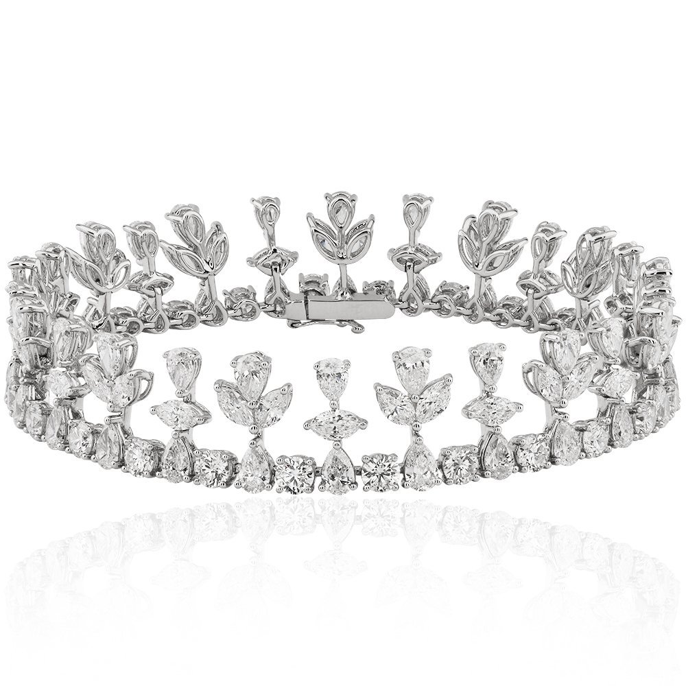 Beyaz altının zarafetini ve pırlantaların büyüleyici parlaklığını bir araya getiren bu bileklik, toplam 1,47 karatlık taşlarıyla dikkat çekiyor. İnce işçiliği ve modern çizgileri sayesinde günlük şıklığınıza zarif bir dokunuş katarken, özel davetlerde tarzınızı tamamlayacak çarpıcı bir aksesuara dönüşüyor. İddialı duruşuyla her anınıza eşlik etmeye hazır.