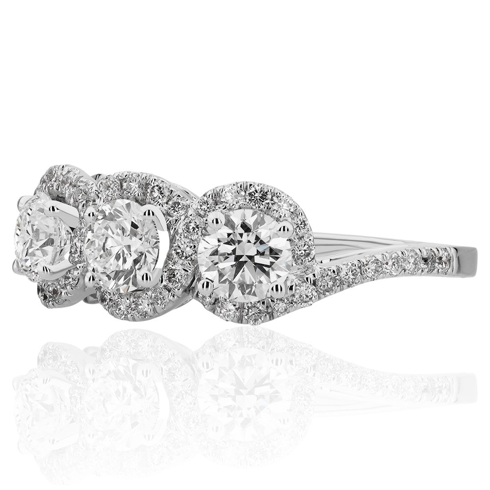 Toplam 1,57 karat pırlantayla tasarlanan bu üç taş yüzük, zarafeti ve anlamı bir araya getiriyor. Orta kısımdaki yuvarlak kesim pırlanta, her iki yanında yer alan aynı formdaki taşlarla çevrelenirken, tüm kompozisyon ışıltılı bir pırlanta halkasıyla tamamlanıyor. İnce işçilikle bezeli bu klasik ve etkileyici model, her anı unutulmaz bir parıltıyla taçlandırmak isteyenler için yaratıldı.