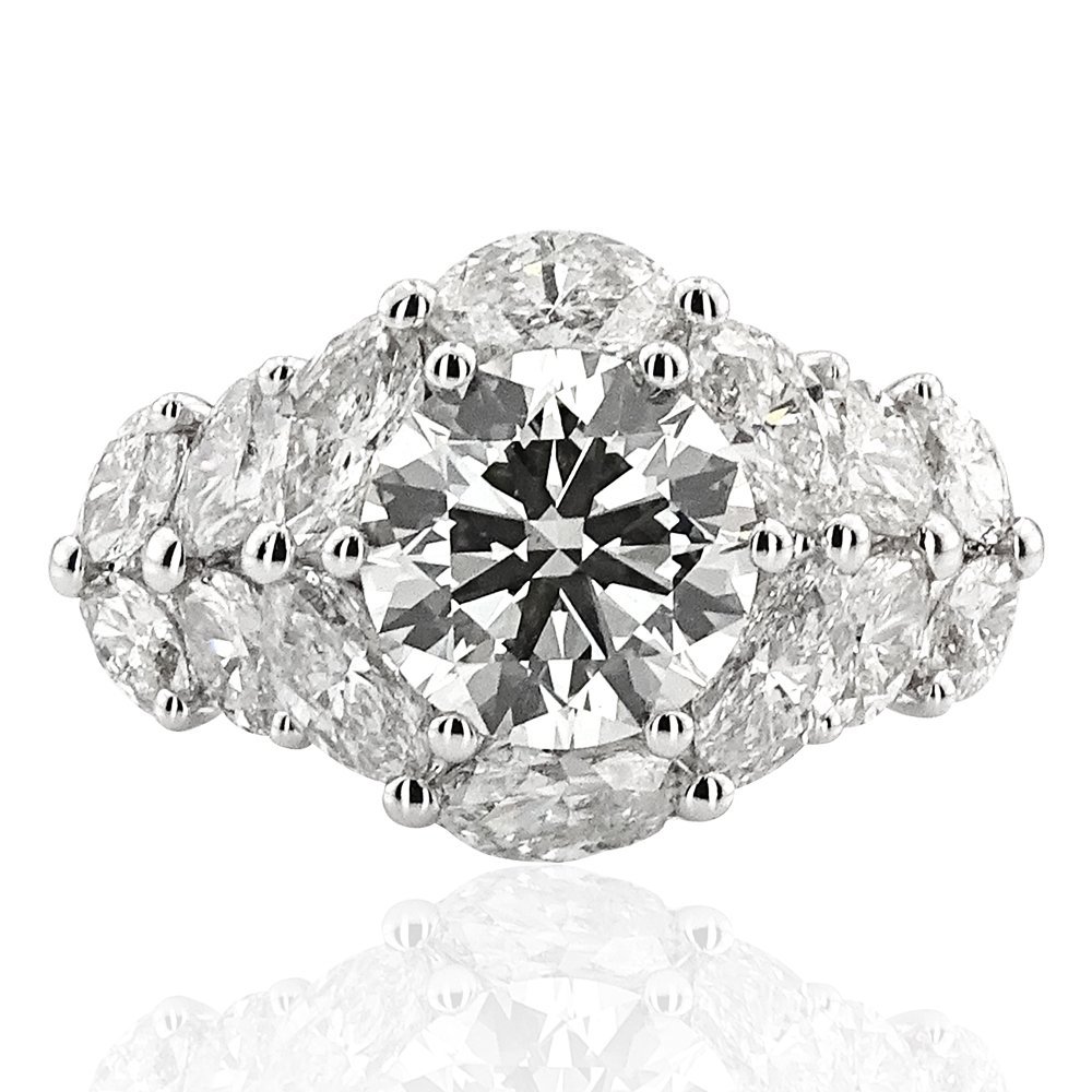 1,72 karat pırlantayla şekillenen bu yüzük, zarafetin ve parıltının cömertçe buluştuğu özel bir tasarım. Merkezdeki iri yuvarlak kesim taş, etrafını çevreleyen markiz kesim taşlarla birlikte, ışığı neredeyse yakalayacak kadar güçlü bir ışıltı yaratıyor. Taşların kusursuz dizilimi, pırlantaların adeta bir çiçek gibi açtığı bu yapıda göz alıcı bir armoni oluşturuyor. Güçlü bir stil ifadesi arayanlar için bu yüzük, sadece parmakta değil, hafızalarda da kalıcı bir iz bırakır.