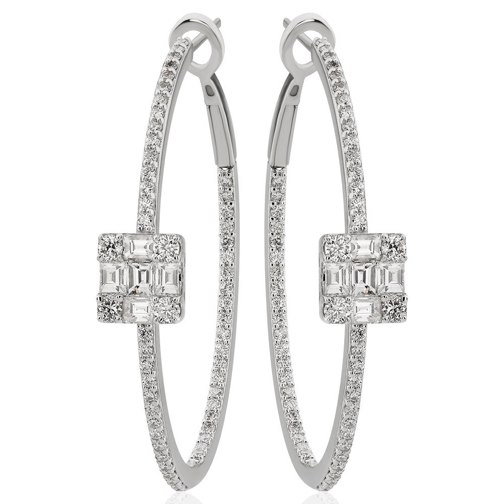1,87 karat pırlantayla tasarlanan bu modern halka küpeler, merkezde yer alan baget ve yuvarlak taşların geometrik dansıyla göz alıyor. İnce halka formu boyunca sıralanmış minik pırlantalar, ışıltıyı zarafetle harmanlıyor. Hem yenilikçi hem klasik dokunuşlar arayanlar için dikkat çekici bir seçim.