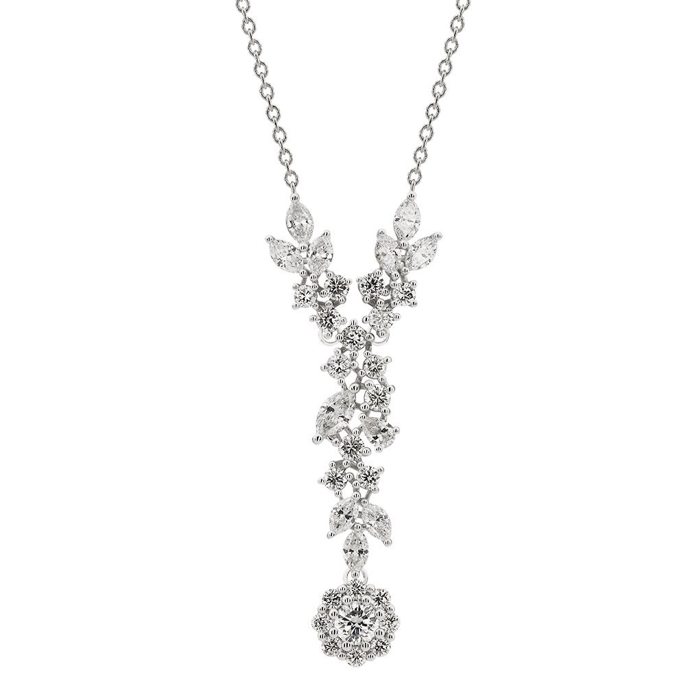 Beyaz altının ışıltılı zarafetinde hayat bulan bu küpeler, toplam 1,98 karat ağırlığındaki yuvarlak, damla ve markiz kesim pırlantaların göz kamaştıran birlikteliğini yansıtıyor. Üstten aşağıya akarak çiçeksi bir hareket yaratan taşlar, ışıltılı bir yıldız motifine bağlanarak incelikli ve zarif bir etki oluşturuyor. Çarpıcı olduğu kadar zarif bu tasarım, görünümünüze zarafetle eşlik edecek özel bir seçim.