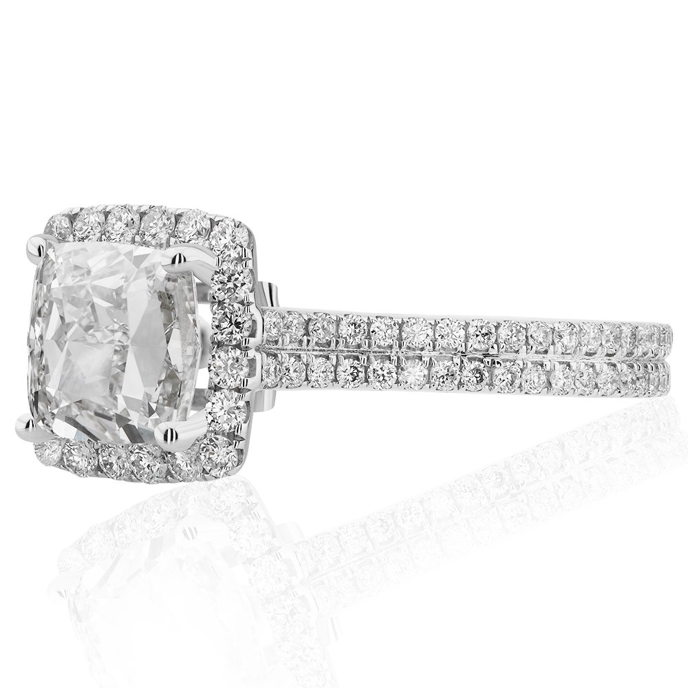 2,01 karat pırlantanın merkezde göz kamaştırdığı bu yüzükte, cushion kesimin zarafeti etrafını çevreleyen ışıltılı taşlarla daha da büyüleyici hale geliyor. İkili sıralı pırlanta bezeli gövde, klasik zarafeti modern çizgilerle buluşturuyor. Parlaklığın geometrik bir kusursuzlukla vücut bulduğu bu tasarım, kalpleri fethedecek kadar etkileyici bir duruş sergiliyor.