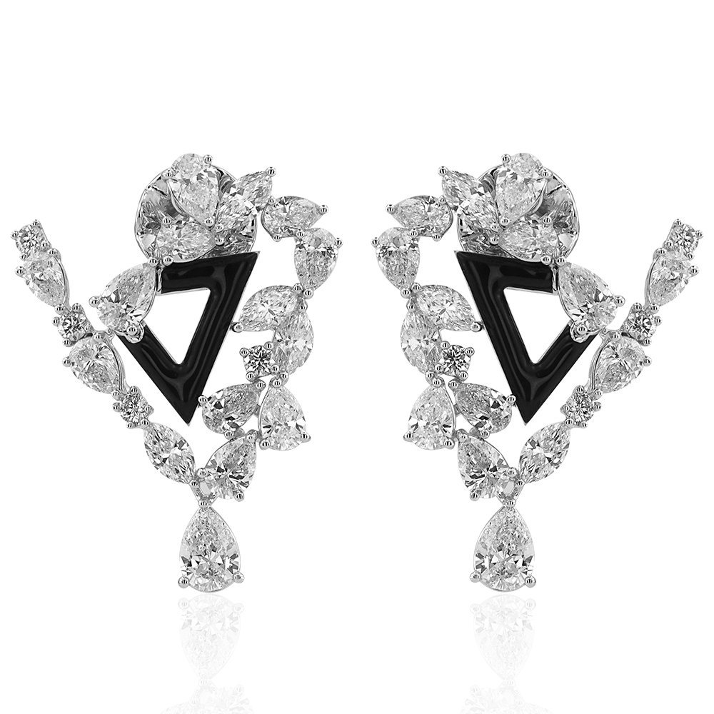 21,36 karatlık damla kesim zümrüt taşlarının büyüleyici yeşil tonuyla tasarlanan bu sallantılı küpeler, beyaz taşlardan oluşan yıldız formundaki detaylarla birleşerek kusursuz bir zarafet sunuyor. Sarı altın pençeler, zümrüdün yoğun rengini zarifçe ön plana çıkarırken, beyaz altın montürün incelikli işçiliğiyle tasarım tamamlanıyor. Doğanın ihtişamını ve inceliğini bir araya getiren bu parça, stilinde gösterişli ama asil bir vurgu yapmak isteyenlerin tercihi olmaya aday.