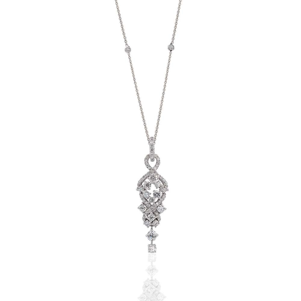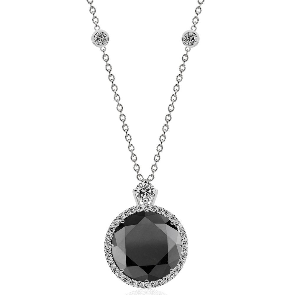 Bu zarif kolye, 28,57 karat büyüklüğünde, göz alıcı bir siyah pırlanta taşıyor. Siyah pırlantanın çevresindeki beyaz pırlanta halka, taşın karanlık ve derin dokusunu öne çıkarırken zarif bir ışıltı da ekliyor. Zincir üzerindeki beyaz pırlantalar, kolyeye ek bir şıklık katıyor ve bu etkileyici parça, her özel anı taçlandırmak için mükemmel bir seçim sunuyor.
