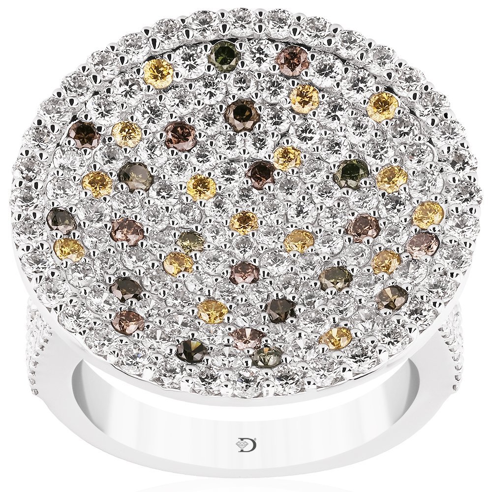 Bu göz alıcı kolye, 3,18 karat çok renkli pırlantalarla hayat buluyor. Beyaz altının zarif çerçevesinde yer alan sarı, kahverengi, siyah ve beyaz pırlantalar, benzersiz bir mozaik oluşturuyor. Pırlantaların rastgele dağılımı, tasarıma sanatsal ve modern bir hava katarken, dış çerçevede yer alan beyaz pırlantalar ışıltıyı zirveye taşıyor. İnce detaylarla işlenmiş zarif zinciri, iki ara pırlanta taşıyla tamamlanarak hareket kazandırıyor. Çarpıcı ve karakteristik tasarımıyla bu kolye, farklı olmayı sevenler ve cesur stilini mücevherleriyle tamamlamak isteyenler için etkileyici bir seçim.