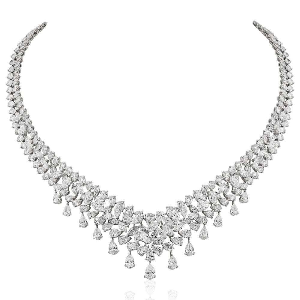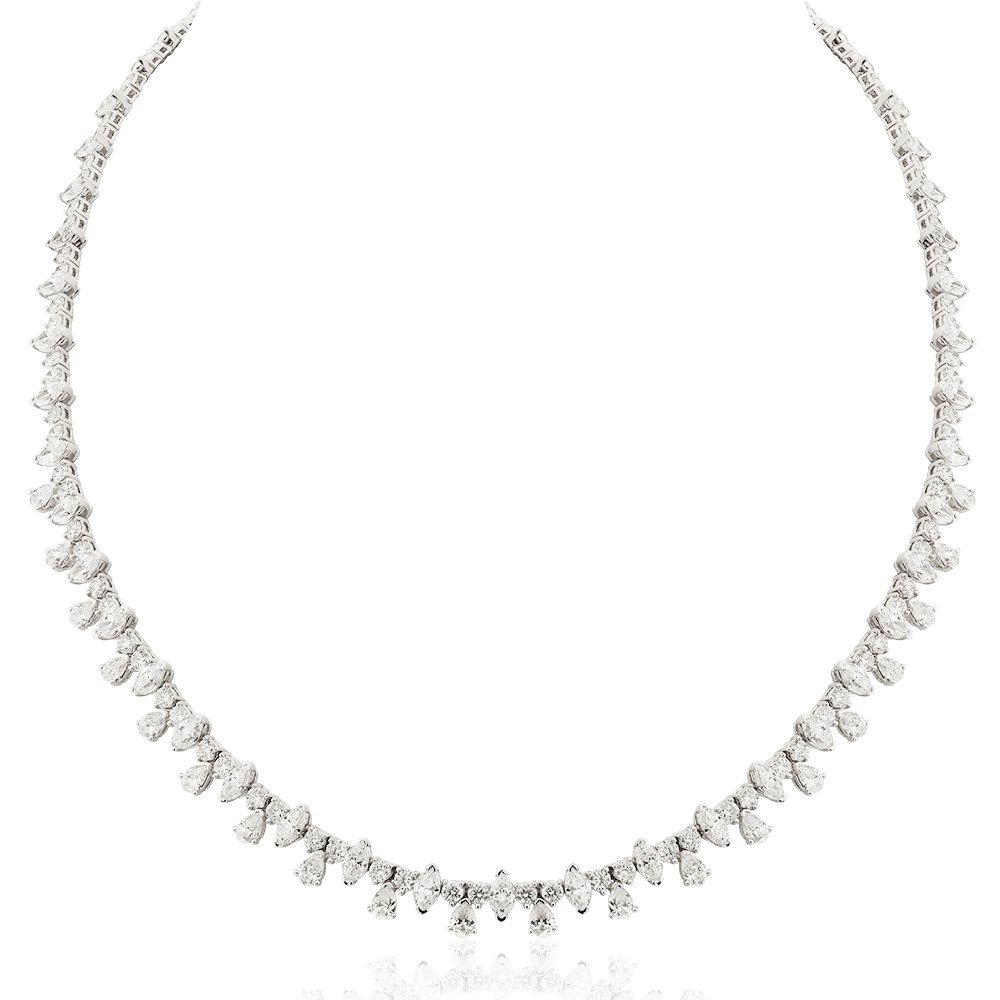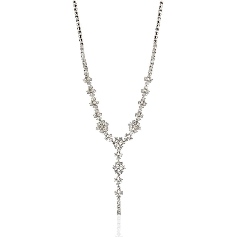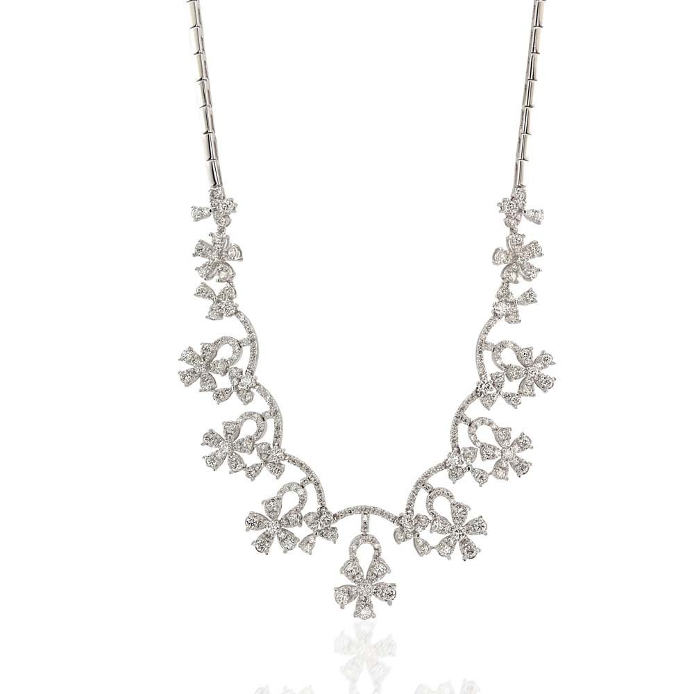 8,96 karat pırlantanın eşsiz ışıltısını taşıyan bu gerdanlık, yuvarlak, damla ve markiz kesim taşların muhteşem uyumuyla zarafeti zirveye taşıyor. Hareketli tasarımı sayesinde ışığı her açıdan yakalayarak göz alıcı bir parlaklık sunuyor. Klasik ve modern çizgileri bir araya getiren bu gerdanlık, stiline zamansız bir zarafet katmak isteyenler için mükemmel bir seçim.